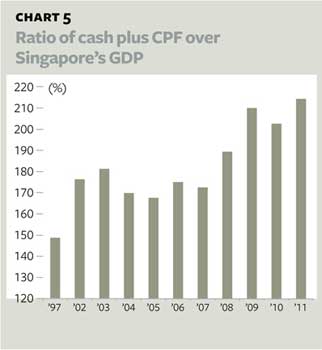 From Chart 5, you can see that as at end last year, the total amount of cash is more than 210 per cent that of Singapore's 2011 GDP!